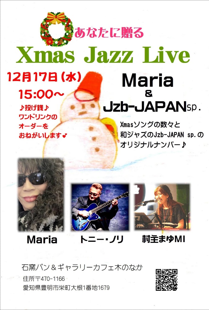 17日(水)15時から、ボーカルMariaさん、ピアノ村主まゆMIさんとの3人で、
